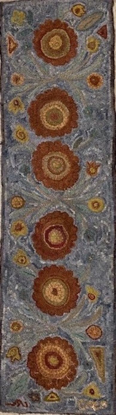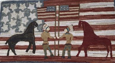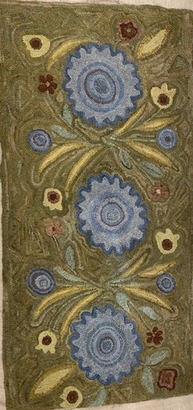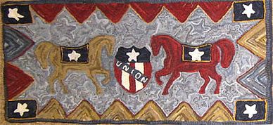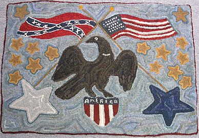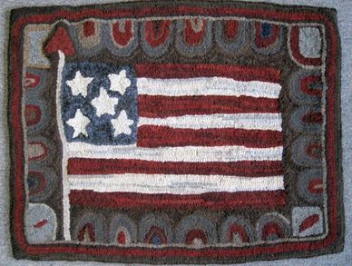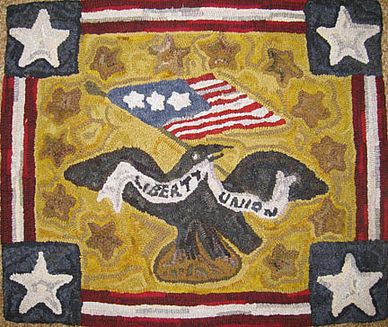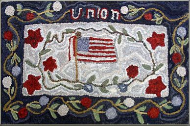 As long as I can remember I have had a love affair with America. I was one of the lucky ones to attend college as an adult. One of my first American History courses “The Lincoln Era,” was taught by one of the countries foremost Lincoln Historians. From that time on I focused my studies on the American Civil War era. I stumbled into rug hooking after seeing an old rug with the words Union hooked in the center. I wanted that rug! The rest of the story is history. I am continually sketching out rugs to represent that period. They are metaphors a statement, person, or event that I have read about.